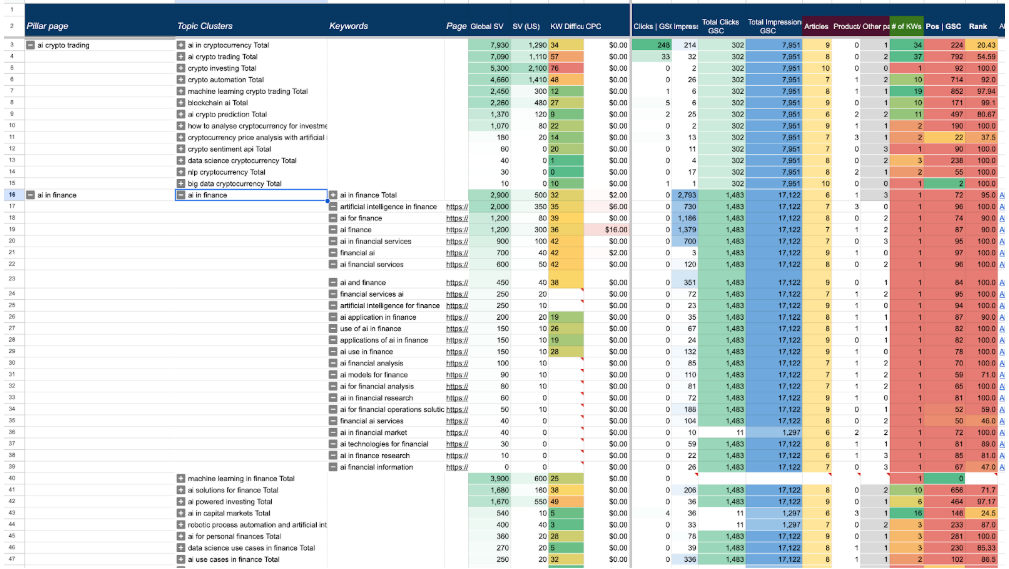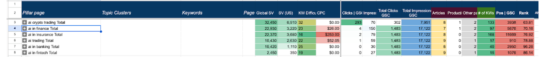 - Connected everything with dynamic pivot tables, so with that, we could see the overall picture, potential, and how to build topical map from easy to rank to harder to rank pages