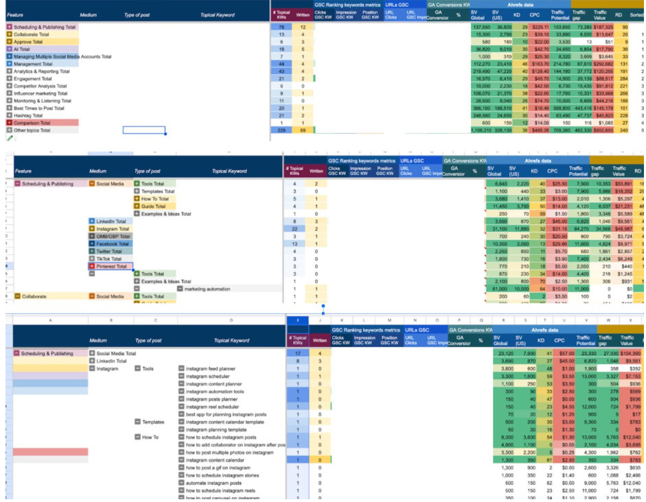 - Clustered selected keywords into topics and mapped them against existing content to reveal gaps
