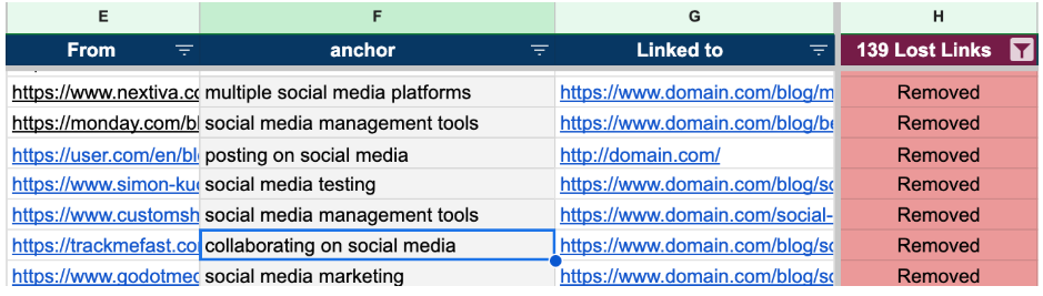 Over the time period, some of the pages were deleted, got updated, or link builders swapped links. To address that problem, we built a custom tool to crawl and check link status. With that we could recover over 100 links, worth $40,000 in value.