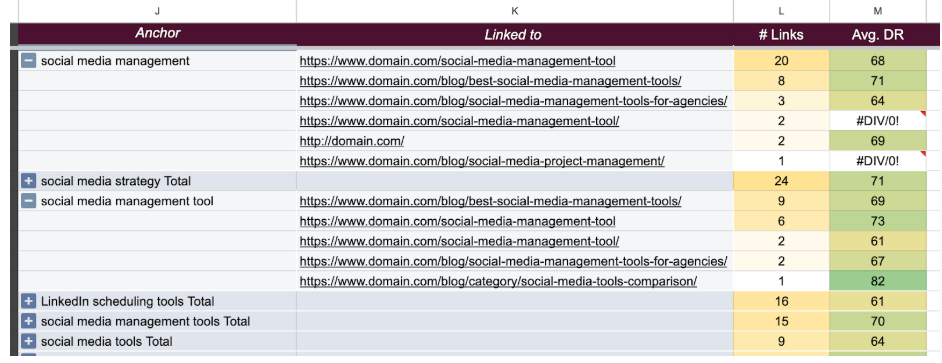 Implemented anchor text distribution analysis to prevent search engine confusion.