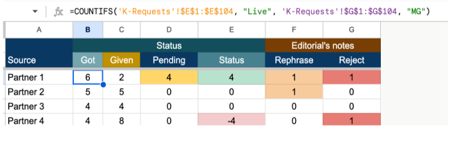 Feeding into a central G-sheet database, allowing us to track the status and quality of each collaboration.